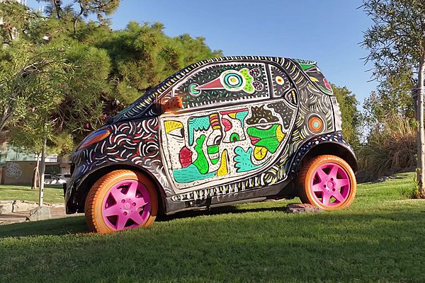 Το smart fortwo 'μεταμορφώθηκε' σε έργο τέχνης από τον εικαστικό-δημοσιογράφο Θανάση Λάλα και βρισκόταν στη Νέα Παραλία της Θεσσαλονίκης εδώ και σχεδόν έναν μήνα.