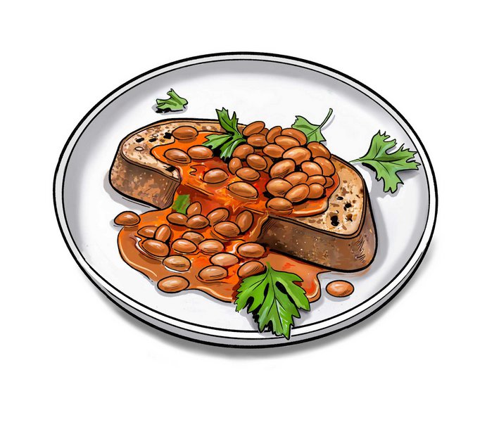 Γ.Φασόλια σε φρυγανιά. Ένα τυπικό βρετανικό πιάτο, είναι ένα απλό φαγητό πλούσιο σε φυτικές ίνες.