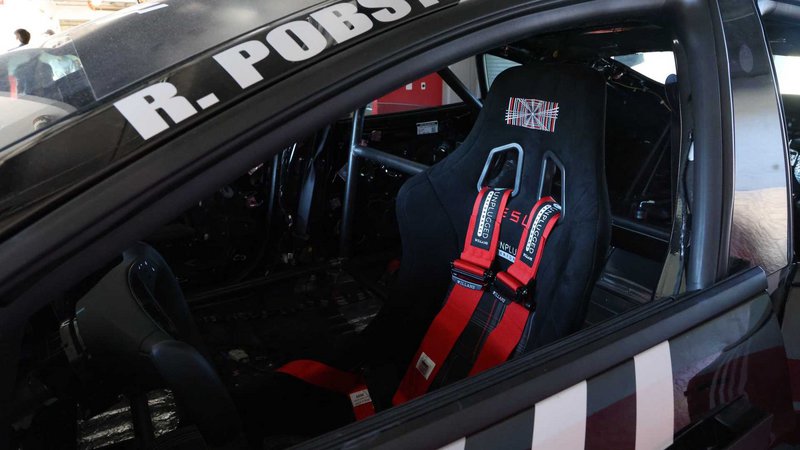 Επίσης, το εσωτερικό έχει αλλάξει αρκετά, με την αφαίρεση πολλών από τις ανέσεις που φέρει βγαίνοντας από το εργαστάσιο, την τοποθέτηση roll cage και bucket καθίσματος στην πλευρά του οδηγού.