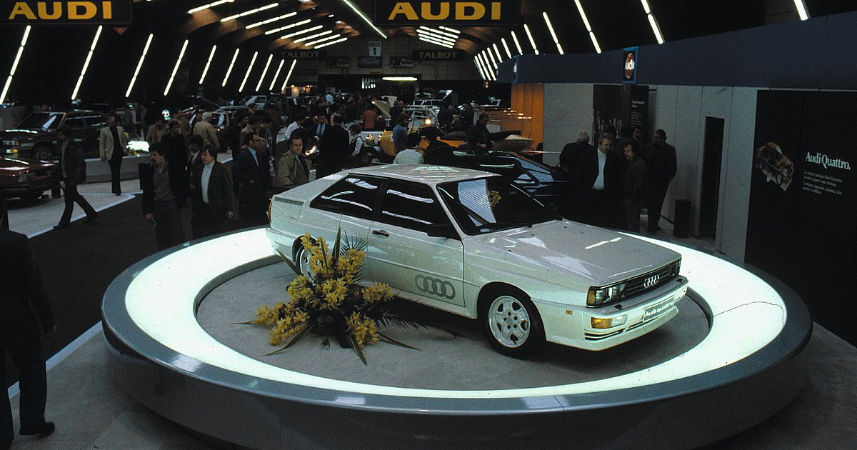 Το 1980, στην Έκθεση Αυτοκινήτου της Γενεύης, η Audi παρουσίασε το Quattro, ένα τρίθυρο coupé που βασιζόταν στο Audi 80 και το οποίο θα άλλαζε ουσιαστικά τα δεδομένα επιδόσεων των αυτοκινήτων, τόσο στην καθημερινότητα όσο και στους αγώνες. Οι επιτυχίες του στο Παγκόσμιο Πρωτάθλημα Ράλι τα πρώτα χρόνια της δεκαετίας του 1980 και η τεχνολογική καινοτομία που εισήγαγε το σύστημα τετρακίνησης «quattro» στα αυτοκίνητα παραγωγής έκαναν την Audi να πρωτοπορεί αλλά και να ταυτιστεί με αυτό.