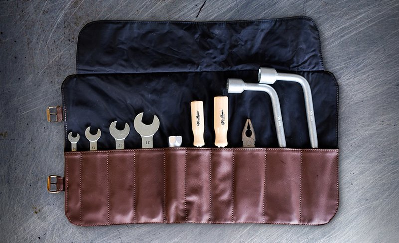 Γνωστή για τη μοναδική αίσθηση στιλ και φινέτσας, η Alfa Romeo, δεν θα μπορούσε παρά να ντύσει το συλλεκτικό κιτ εργαλείων με μια εξίσου κομψή θήκη. Τα 10 εργαλεία του κιτ φιλοξενούνται σε μια δερμάτινη θήκη με κλασσικό στιλ και το λογότυπο της Alfa Romeo Classiche είναι 4 διπλά γερμανικά κλειδιά, 2 κλειδιά με «καρυδάκι», 1 κλειδί για μπουζί, 2 κατσαβίδια (απλό και σταυροκατσάβιδο) και 1 πένσα. Η συλλεκτική εργαλειοθήκη της Alfa Romeo είναι διαθέσιμη μέσω του εξουσιοδοτημένου δικτύου πωλήσεων και υπηρεσιών after sales της μάρκας με τον κωδικό 71808765.