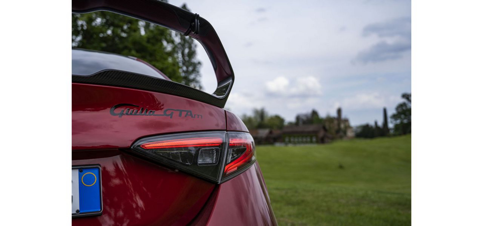 Ακόμα και το θρυλικό “Trilobo”, η σύνθεση της τριγωνικής μάσκας και των εκατέρωθεν αυτής αεραγωγών, έχει γίνει πιο επιθετικό, χωρίς όμως να χάνει το DNA της μάρκας, όπως και οι μικρές εισαγωγές στη μάσκα που θυμίζουν τις αντίστοιχες που είχαν τα μονοθέσια της Alfa Romeo στη Formula 1 στις αρχές της δεκαετίας του 1950. Στο κάτω μέρος, το ενεργό σπόιλερ είναι ανασχεδιασμένο σε σχέση με την έκδοση Quadrifoglio και στην GTAm μπορεί να ρυθμιστεί ώστε να λειτουργεί σε ισορροπία με την πίσω μεγάλη αεροτομή, η οποία επίσης διαθέτει τέσσερις θέσεις ρύθμισης του κεντρικού τμήματος της. Στο πλάι, τα αεροδυναμικά στοιχεία τονίζουν το πλάτος του αυτοκινήτου, ενώ οι ειδικού σχεδιασμού τροχοί των 20 ιντσών, διαθέτουν κεντρικό μπουλόνι ώστε να συνδυάζουν τη δυναμική αισθητική με το χαμηλό βάρος. Η συγκεκριμένη λύση αποτελεί κανόνα στη Formula 1, αλλά κάτι μοναδικό για σεντάν παραγωγής.