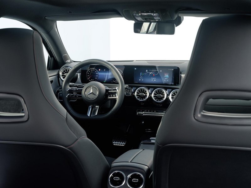 Στο εσωτερικό της νέας A-Class, ξεχωρίζουν οι δύο οθόνες, τοποθετημένες η μία δίπλα στην άλλη, σε μια ενιαία κατασκευή. Η μία είναι 7 ιντσών και η άλλη, που βρίσκεται στο κέντρο, 10,25 ιντσών. Προαιρετικά μπορεί να διατεθούν δύο οθόνες 10,25 ιντσών και παρέχουν όλες τις πληροφορίες που χρειάζεται ο οδηγός, αλλά και δυνατότητες πλοήγησης, σύνδεσης πολυμέσων και τηλεφώνου, infotainment κλπ.