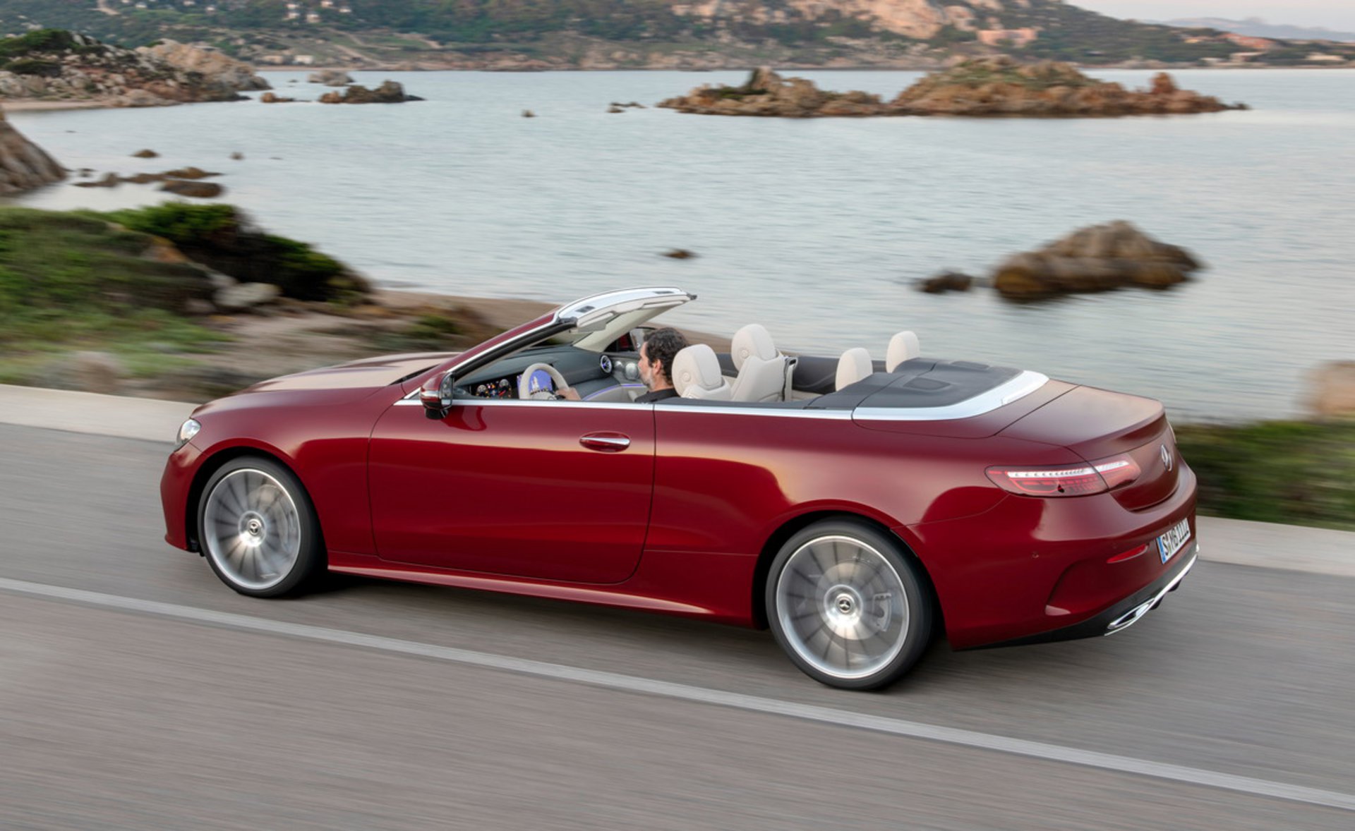 Όπως και στην σεντάν οι πιο σημαντικές αλλαγές στις E-Class Coupe και Cabriolet είναι το ανανεωμένο εμπρός μέρος. Υπάρχουν τα νέα στάνταρ LED φωτιστικά σώματα και η καινούργια γρίλια, ενώ στις συγκεκριμένες εκδόσεις η κλίσης της γραμμής της οροφής δημιουργεί ένα ιδιαίτερα σπορτίφ στοιχείο και στα δύο αμαξώματα. Ιδίως στην έκδοση AMG με τις λεπτομέρειες που ακολουθούν τα σπορ μοντέλα με το σήμα της AMG και τις 19άρες ζάντες.