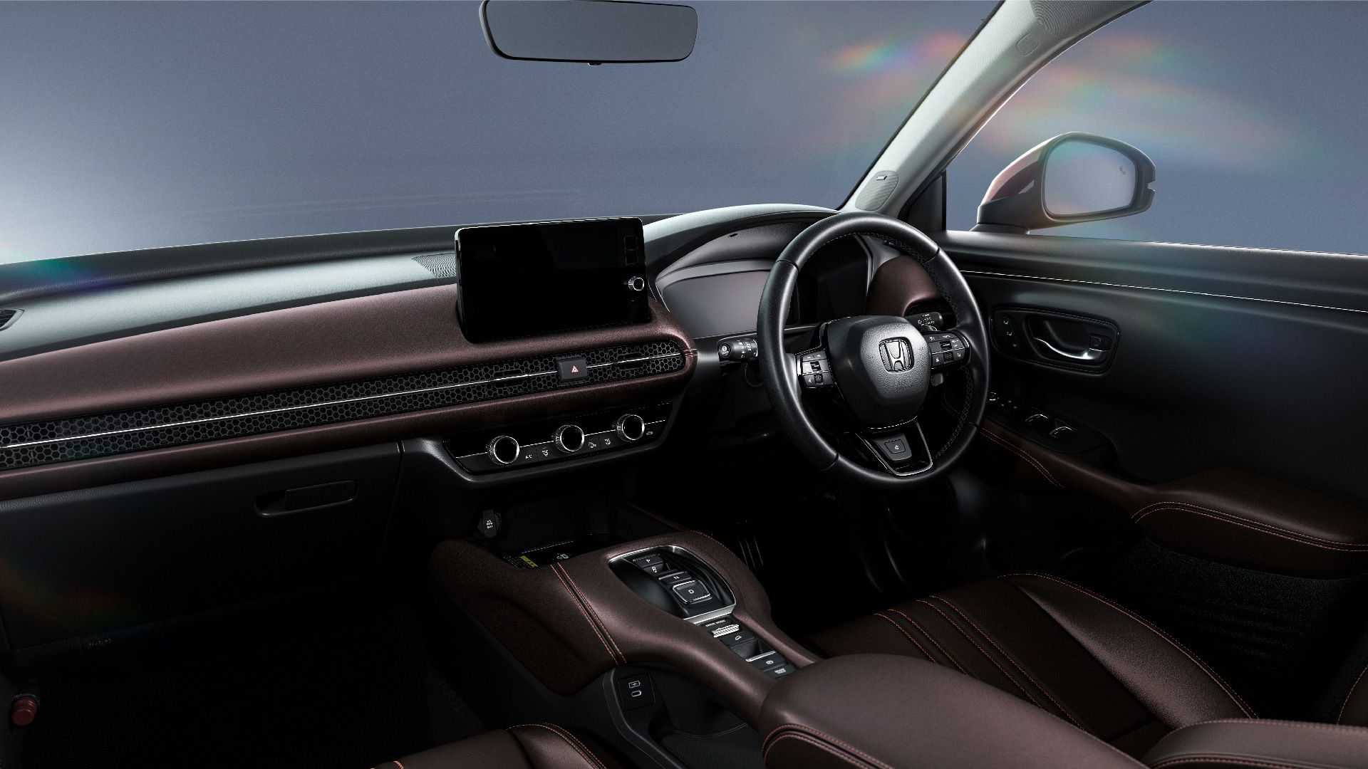 Το εσωτερικό μοιάζει αρκετά με αυτό του HR-V, το οποίο με τη σειρά του μοιράζεται την καμπίνα με το νεότερο Civic. Αντί για μοχλό ταχυτήτων το ZR-V διαθέτει κουμπιά για τον χειρισμό του αυτόματου κιβωτίου που του δίνουν έναν πιο μοντέρνο αέρα.