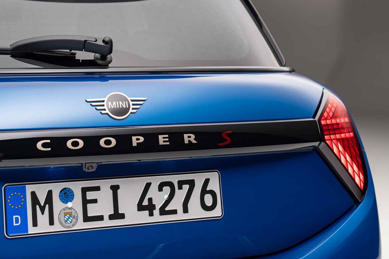 Η νέα αισθητική MINI συνεχίζεται στο πίσω μέρος με καθαρές επιφάνειες και χωνευτά πίσω φώτα. Οι κάθετα ευθυγραμμισμένες συστοιχίες LED θυμίζουν τα κλασικά φώτα MINI και, όπως και οι προβολείς, μπορούν να αλλάζουν σε διαφορετικές ρυθμίσεις. Η χωνευτή τοποθέτηση των πίσω φώτων διαμορφώνει μία μοντέρνα και καθαρή επιφάνεια στο σμιλεμένο πίσω μέρος του αυτοκινήτου. Μία μαύρη λωρίδα που επιτελεί χρέη χειρολαβής και φέρει τη χαρακτηριστική ονομασία του μοντέλου χωρίζει οπτικά το πίσω τμήμα. Ο οριζόντιος προσανατολισμός της αναδεικνύει το πλάτος του νέου MINI Cooper.