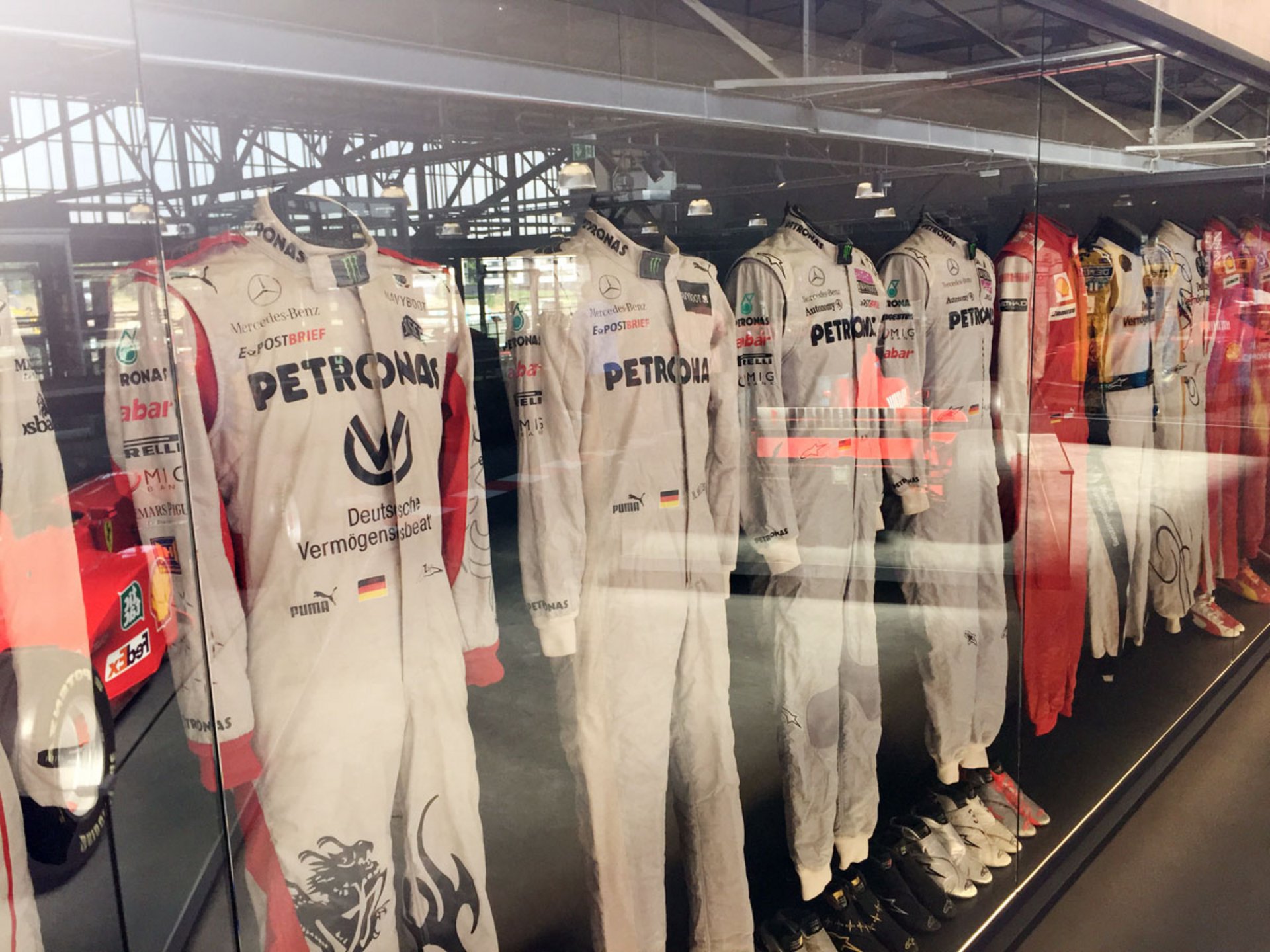 Επίσης, εκτίθενται πολλές φόρµες που φόρεσε ο Michael Schumacher κατά τη διάρκεια της λαµπερής καριέρας του µε τη Benetton, τη Ferrari και τη Mercedes, αλλά και σε ιδιαίτερες περιπτώσεις, όπως στο «Race of Champions». Επίσης, είναι εκτεθειµένα σε ειδική προθήκη τα κράνη που χρησιµοποίησε κατά τη διάρκεια της καριέρας του, φυσικά πολλά από τα τρόπαιά του, καθώς και αντικείµενα ιδιαίτερης συναισθηµατικής αξίας, όπως οικογενειακές φωτογραφίες και εικόνες από τα πρώτα βήµατα του «Σούµι» στον µηχανοκίνητο αθλητισµό.