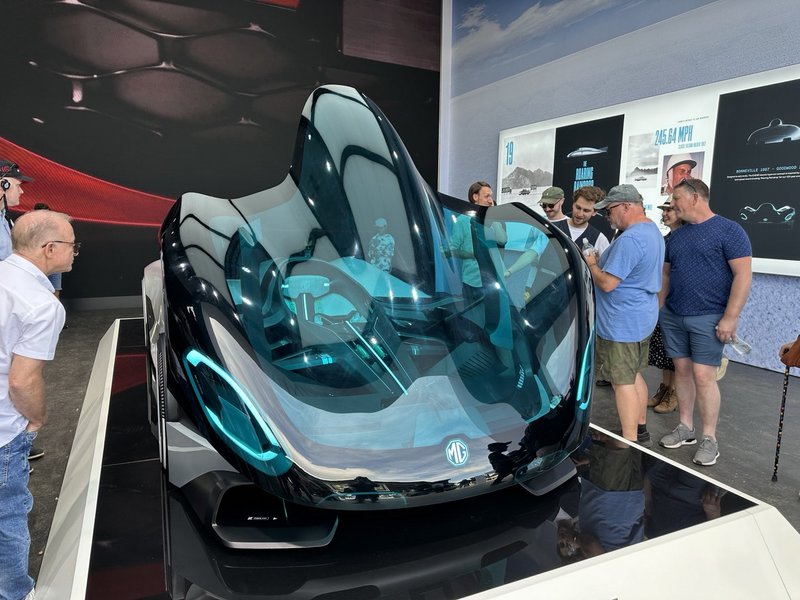 Από την κεντρική σκηνή δε θα μπορούσε να λείπει και το Cyberster, το οποίο άλλωστε είναι το βασικό έκθεμα της MG για το Φεστιβάλ, αφού βρίσκεται και στο γλυπτό της κεντρικής εισόδου της Έπαυλης Goodwood.