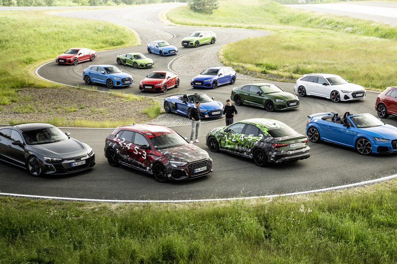 Η αρχή έγινε με το αμιγώς ηλεκτρικό 4θυρο κουπέ Audi RS e-tron GTπου εξοπλίζεται με δύο ηλεκτροκινητήρες -έναν σε κάθε άξονα- με συνδυαστική απόδοση 598 ίππων στο RS e-tron GT και μέγιστη ροπή 830 Nm. To 4θυρο gran tourismo ήταν το πρώτο πλήρως ηλεκτρικό μοντέλο μιας μακράς λίστας μελλοντικών «ηλεκτρισμένων» μοντέλων υψηλής απόδοσης που θα φτάσουν μέχρι το 2030.