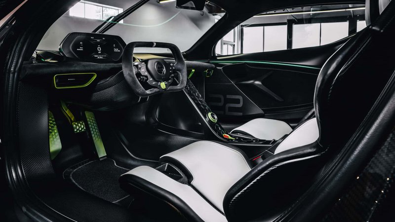 Στην καμπίνα, το λευκό και το μαύρο χρώμα κυριαρχούν πάνω στα δερμάτινα καθίσματα, με το Alcantara να καλύπτει επιφάνειες στο ταμπλό και το τιμόνι. Η αντίθεση γίνεται και πάλι με το κίτρινο χρώμα, που καταφέρνει να τονίσει καίρια σημεία στο εσωτερικό.