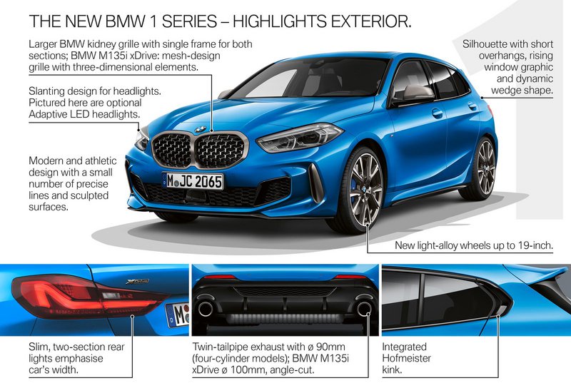 Όπως μπορούμε να δούμε από τις φωτογραφίες η 3η γενιά της Σειράς 1 ξεχωρίζει από την εμφατική μάσκα και τους νέους προβολείς όταν τα πίσω φωτιστικά σώματα μας παραπέμπουν στο απερχόμενο μοντέλο. Πάντως, η μεγάλη αλλαγή σε σχέση με το τελευταίο αφορά φυσικά στη νέα πλατφόρμα UKL2 η οποία έχει την κίνηση στον μπροστινό άξονα.