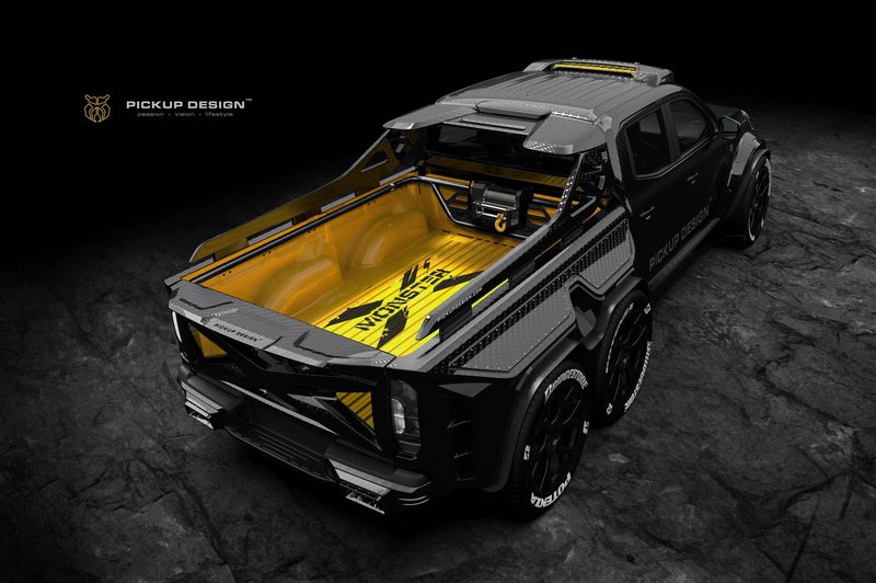 Ο χώρος φόρτωσης παραμένει αναλλοίωτος είναι όμως καλυμμένος με κίτρινο πλαστικό, ώστε να κάνει ένα εντυπωσιακό contrast με το μαύρο του αμαξώματος. Το ίδιο κίτρινο χρώμα χρησιμοποιείται και σε άλλα σημεία του αυτοκινήτου, όπως στα φρένα ή τα καθίσματα. Τα τελευταία είναι τα μόνα που μπορούμε να δούμε πίσω από τα ακραία φιμέ τζάμια, αν και με βάση το τι έχει φτιάξει η συγκεκριμένη εταιρία στο παρελθόν σίγουρα θα είναι κάτι ακραίο όσο και το αμάξωμα.