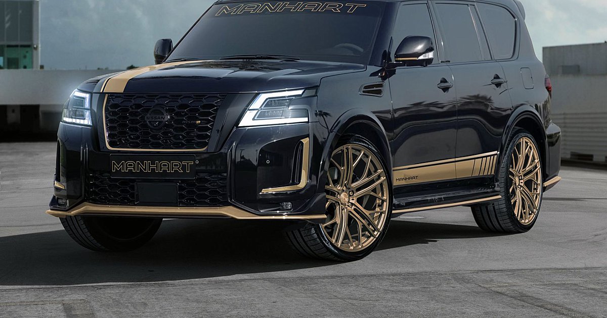 Ήδη από τη Nismo, το SUV διαθέτει αρκετά επιθετικό body kit, με εμπρός splitter, πίσω πτέρυγα και μεγάλο διαχύτη, όμως για τη Manhart αυτό -προφανώς- δεν είναι αρκετό, καθώς έπρεπε να επενδύσει και με μαύρο-χρυσό livery, χρυσές ζάντες 24 (!) ιντσών και ματ φινίρισμα στις λεπτομέρειες.