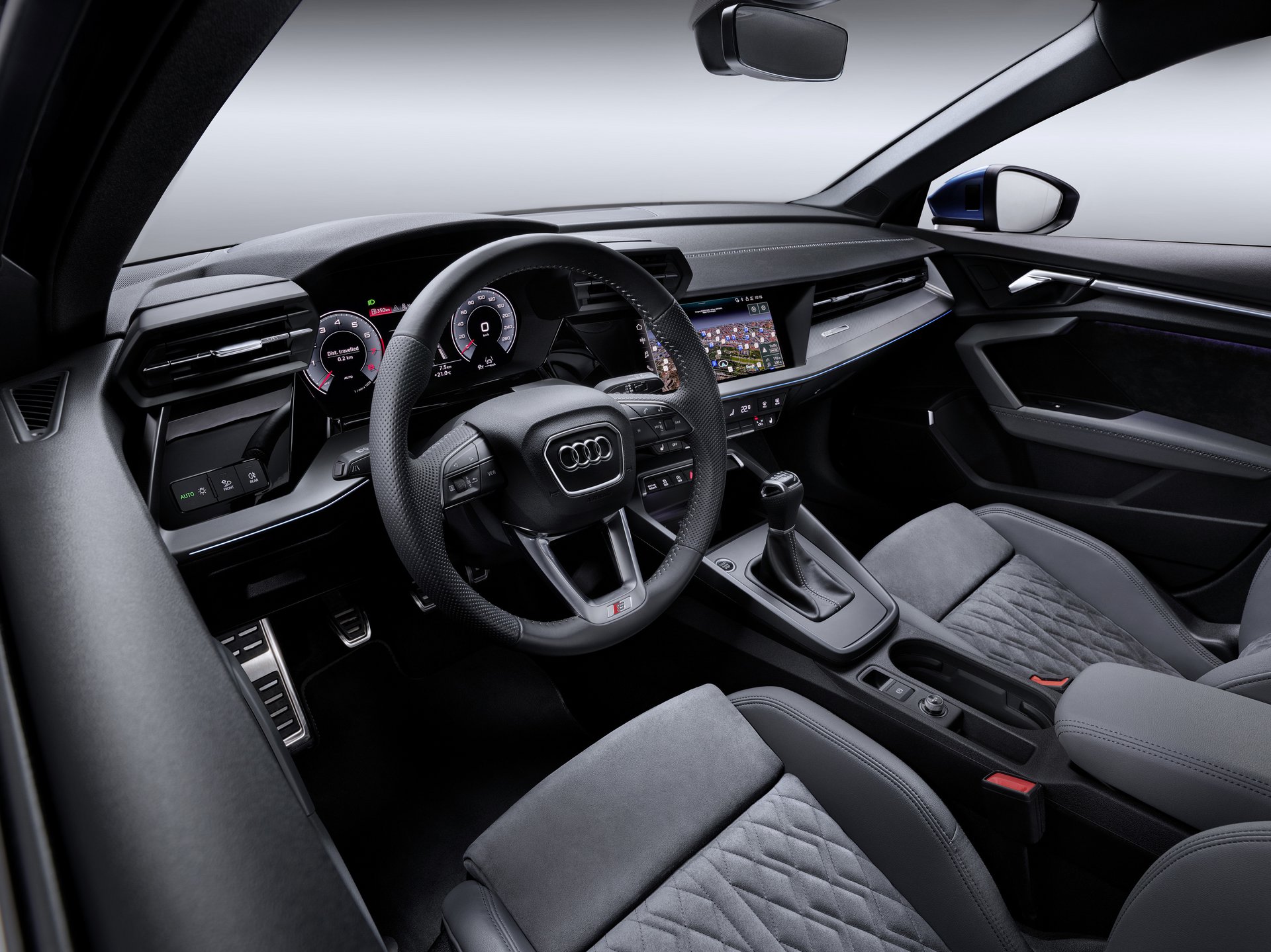 Το κόκπιτ του A3 Sportback είναι πλήρως εστιασμένο στον οδηγό. Χρησιμοποιεί στοιχεία από τα μοντέλα μεγαλύτερων κατηγοριών της μάρκας και είναι εξοπλισμένο με οθόνη αφής 10,1 ιντσών ως στάνταρ, που είναι ενσωματωμένη στην κεντρική κονσόλα. Αυτή αναγνωρίζει τα γράμματα που εισάγονται με το χέρι, παρέχει ακουστική ανατροφοδότηση και μπορεί να ελεγχθεί χρησιμοποιώντας φυσικό φωνητικό έλεγχο.