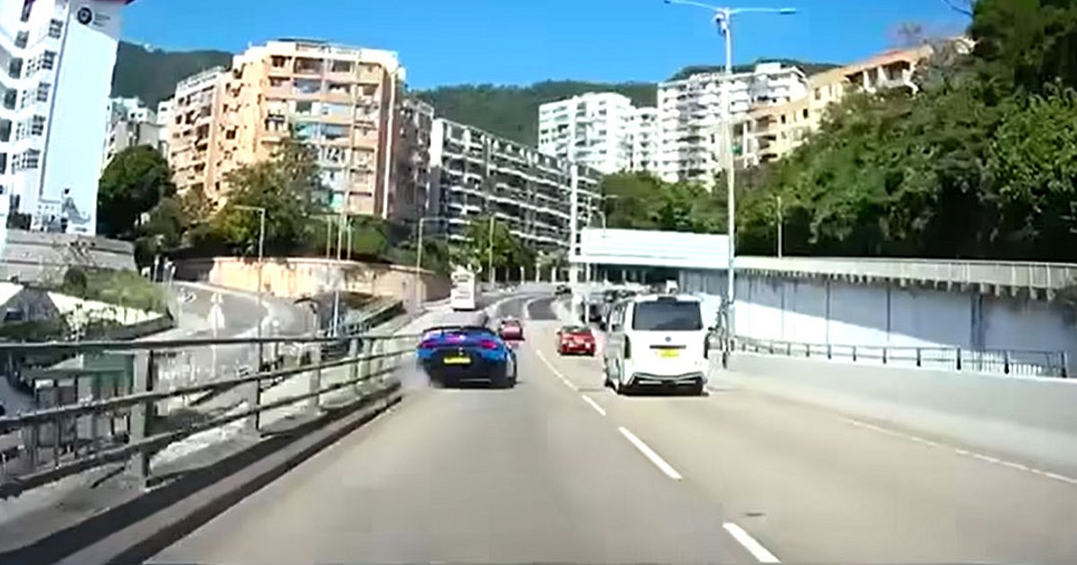 Μια τέτοια, δυσάρεστη, βίωσε και ο οδηγός μιας μπλε Huracan λίγο πριν την αλλαγή του χρόνου, όπως προκύπτει από video που αναρτήθηκε στη σελίδα HK (Hong Kong) Cam του Facebook, τραβηγμένο από κάμερα μέσα σε αυτοκίνητο που ακολουθούσε την Lamborghini.