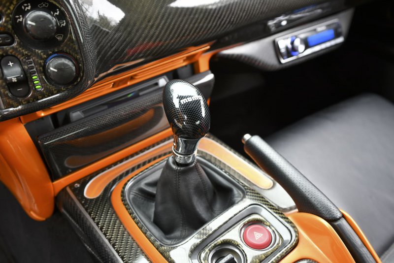 Περνώντας στο εσωτερικό, το ταμπλό είναι καλυμμένο εξ ολοκλήρου με ανθρακόνημα, με πορτοκαλί λεπτομέρειες να πλαισιώνουν την κεντρική κονσόλα, το τιμόνι και τους αεραγωγούς. Διαθέτει αγωνιστικά καθίσματα και τιμόνι της Sparco, ενώ ο λεβιές ταχυτήτων είναι της Momo. Έχει εξοπλιστεί με ένα ηχοσύστημα Pioneer με ενσωματωμένο DVD player, όπως και μια οθόνη στη μεριά του συνοδηγού.