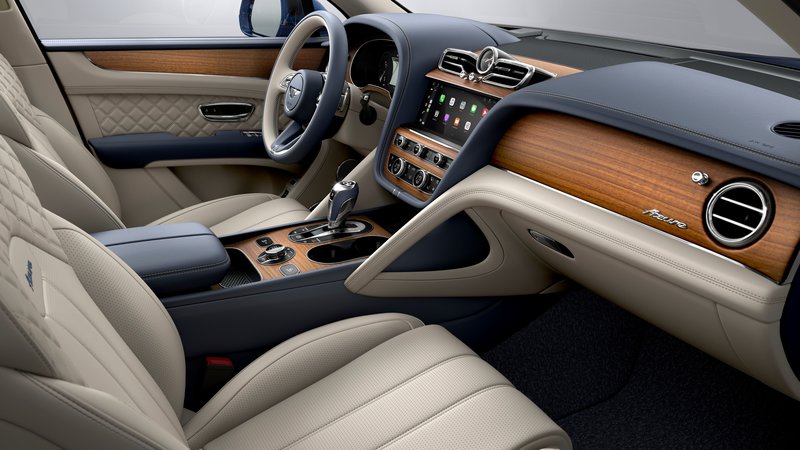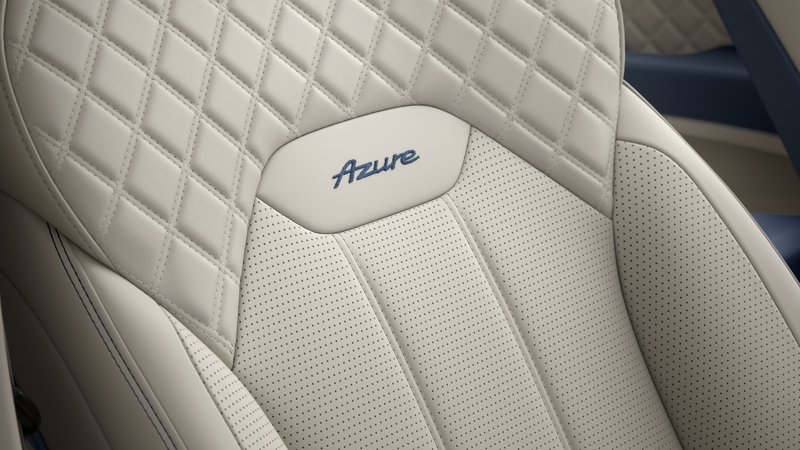 Οι πελάτες που θα επιλέξουν τις εκδόσεις Azure έχουν επίσης μια πλήρη γκάμα 15 χρωμάτων δέρματος και χρωματικών συνδυασμών για να διαλέξουν, με ραφές σε αντίθεση. Τα φωτιζόμενα μαρσπιέ Azure, τα πεντάλ Bentley 'B', ο ατμοσφαιρικός φωτισμός και το τιμόνι σε διχρωμία με λειτουργία θέρμανσης συμπληρώνουν τις οπτικές αναβαθμίσεις.