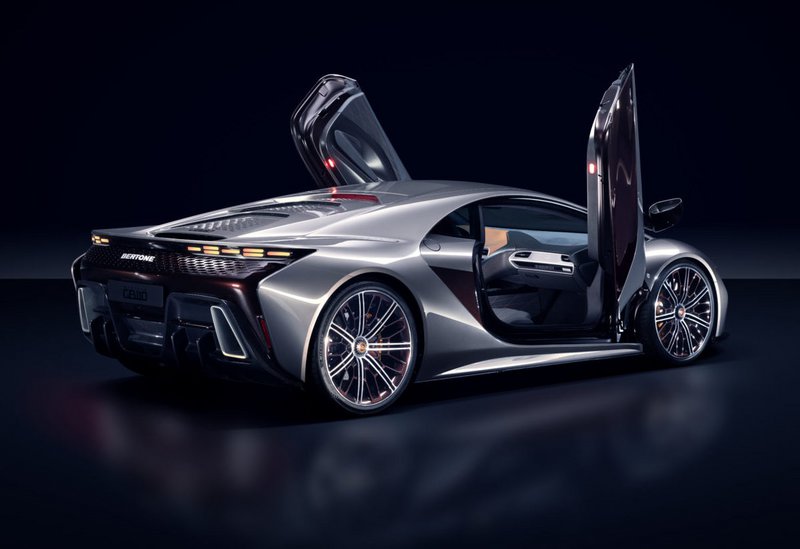 Σχεδιαστικά, η Bertone έχει δημιουργήσει ένα μοναδικό hypercar που δε μοιάζει με κανένα άλλο στην αγορά. Στο μπροστινό μέρος έχουν τοποθετηθεί δύο στενά φωτιστικά σώματα που ενώνονται με ένα λεπτό μέρος του αμαξώματος, κάνοντας τη μάσκα ιδιαίτερα επιθετική.