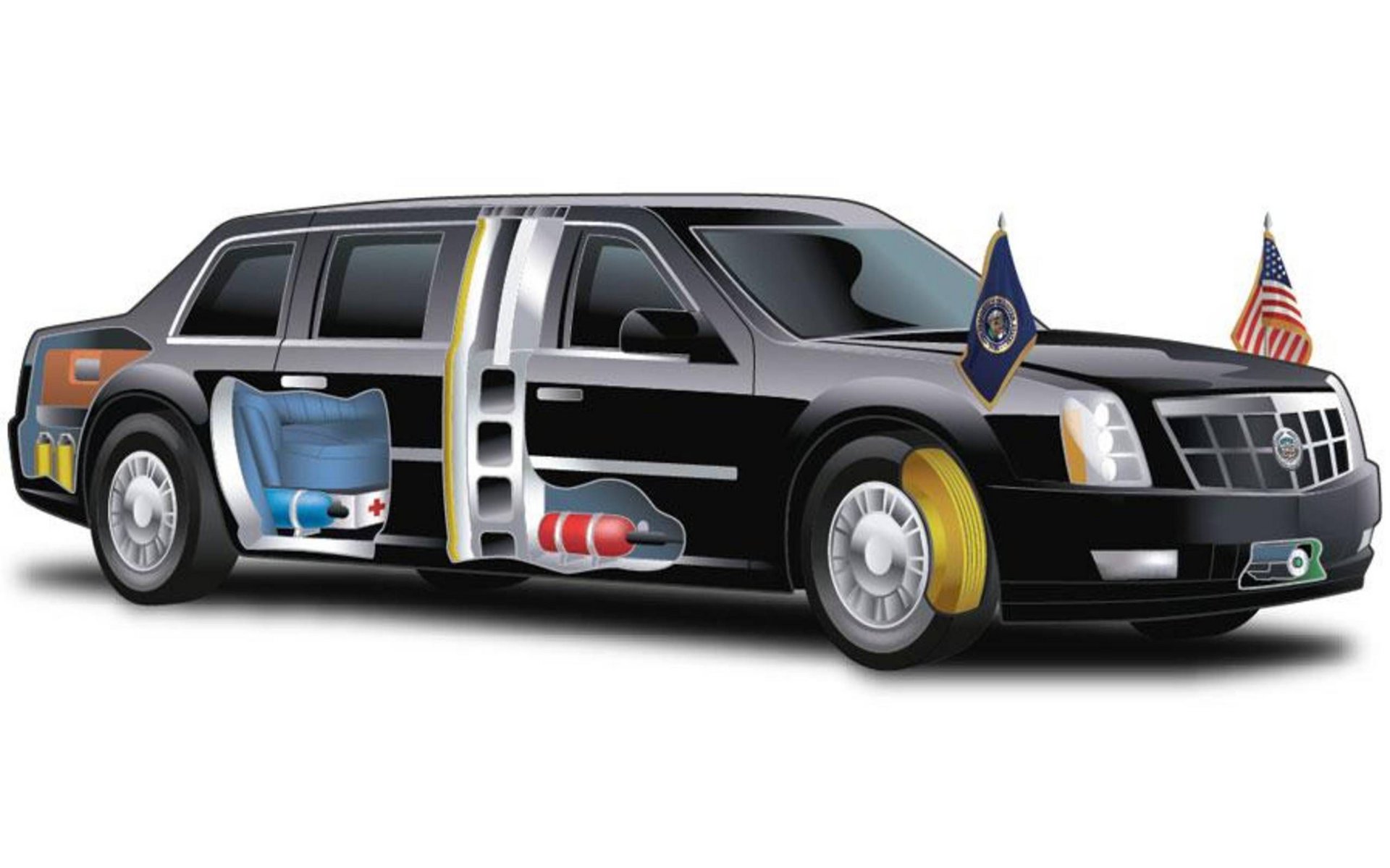Κάθε προεδρική λιμουζίνα φέρει στο εσωτερικό ψυγείο όπου φυλάσσονται φιάλες αίματος της ομάδας του Προέδρου των ΗΠΑ ώστε να είναι άμεσα διαθέσιμες στο σενάριο που χρειαστεί να μεταγγιστούν. Το όχημα μπορεί να μεταφέρει έως 7 άτομα μεταξύ των οποίων υπάρχει πάντα και ένας στρατιωτικός ιατρός.