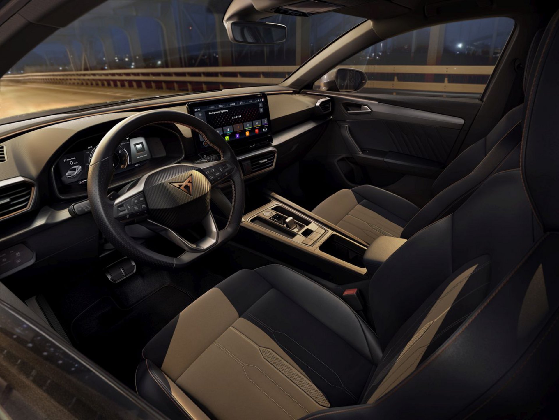 Στο εσωτερικό, το αυτοκίνητο θα διατίθεται με υφασμάτινα καθίσματα CUPRA Sports και προαιρετικά με δερμάτινα καθίσματα bucket CUPRA που συμπληρώνονται από το ταμπλό με ραφές, όλα σε χρώμα Petrol Blue ή μαύρο.
