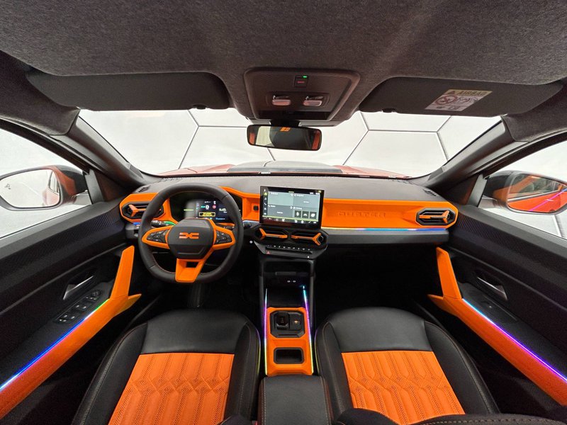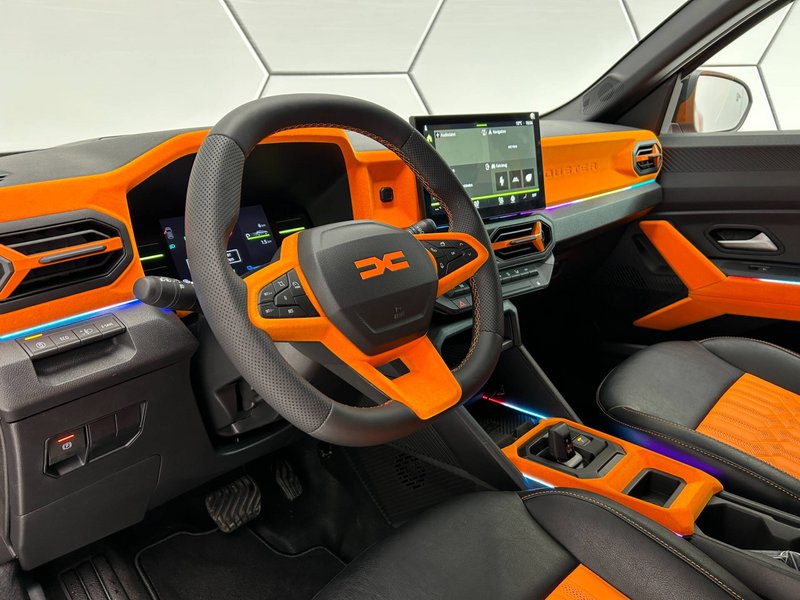 Εξίσου εντυπωσιακή λεπτομέρεια είναι και η διπλή κεντρικά τοποθετημένη εξάτμιση. Φυσικά η βελτιωτική εταιρία δεν ξέχασε και το εσωτερικό του Duster Redust Sport, ιδιαίτερα στην υβριδική έκδοση των 140 PS, όπου έχει τοποθετηθεί ανασχεδιασμένη καμπίνα με χρωματιστές επενδύσεις και πορτοκαλί λεπτομέρειες που δίνουν μια σπορ αίσθηση.