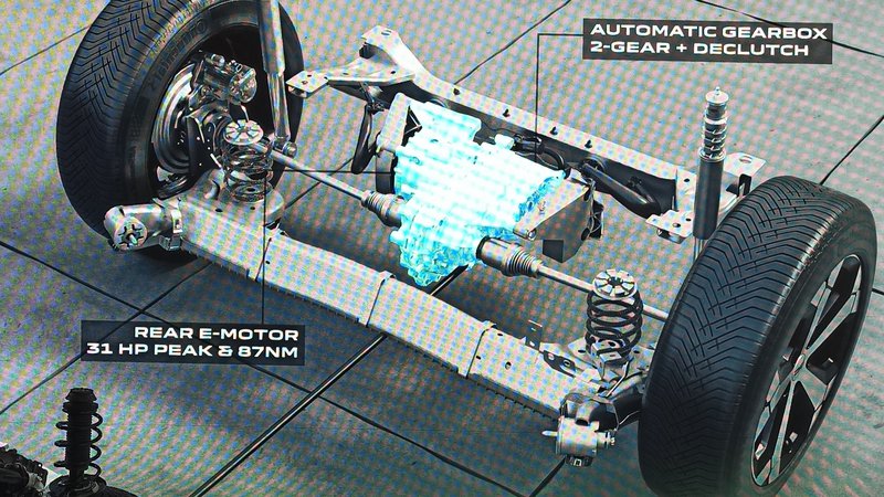 Και αφού δεν έφτανε αυτό, το έκαναν και τετρακίνητο με έναν ηλεκτροκινητήρα 31 PS και 87 Nm στον πίσω άξονα και ένα κιβώτιο 2 σχέσεων στον ηλεκτροκινητήρα για ταχύτητες μέχρι 70 km/h για κίνηση σε off road τερέν με την πρώτη σχέση ή 140 km/h για σκέτη κίνηση σε ανοιχτό δρόμο με τη δεύτερη. Σαφές προβάδισμα της ηλεκτρικής τετρακίνησης καθώς δεν υπάρχουν διαφορικά να καταπονούνται σε δύσκολο τερέν. Αμφότερα τα συστήματα φροντίζουν να φορτίζουν μια αερόψυκτη μπαταρία ιόντων λιθίου 0,8 kWh η οποία αναλαμβάνει τα της ηλεκτροκίνησης με τους δύο ηλεκτροκινητήρες με αποτέλεσμα τα Duster και Bigster να είναι σε θέση να κινηθούν ως προσθιοκίνητα, ως τετρακίνητα αλλά και αμιγώς ηλεκτρικά ως….πισωκίνητα για μικρές αποστάσεις.