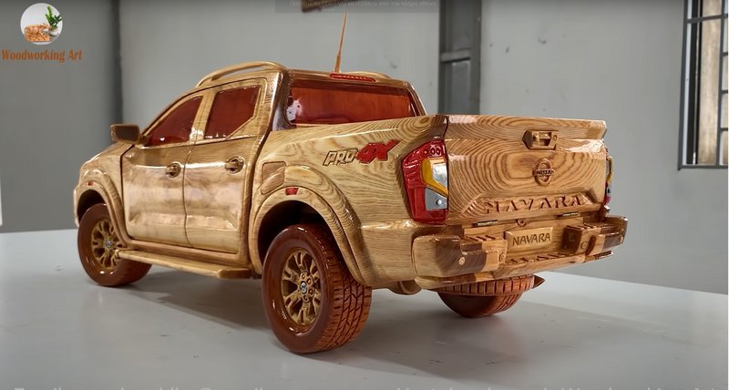 Στη συγκεκριμένη περίπτωση, ο μοντελιστής αποφάσισε να δημιουργήσει ένα Nissan Navara υπό κλίμακα χρησιμοποιώντας ως υλικό το ξύλο. Με οδηγό τις φωτογραφίες του μοντέλου και κάποια τεχνικά στοιχεία που αφορούν στο διπλοκάμπινο μοντέλο της ιαπωνικής εταιρείας, ξεκίνησε εξαρχής όλη τη διαδικασία κατασκευής του.