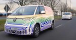 Το τιμόνι είναι πανομοιότυπο με αυτό που βλέπουμε και στο μικρότερο ηλεκτρικό ID.3. Οι χρωματικές επιλογές για τα καθίσματα με το συνδυασμό λευκών και πορτοκαλί τόνων ξεφεύγουν από τα βαρετά και συνηθισμένα γκρι-μαύρα εσωτερικά, ενώ ο ίδιος χρωματικός συνδυασμός υπάρχει και στα εσωτερικά των θυρών, θυμίζοντας πολύ τα κλασικά two tone βαν της VW.