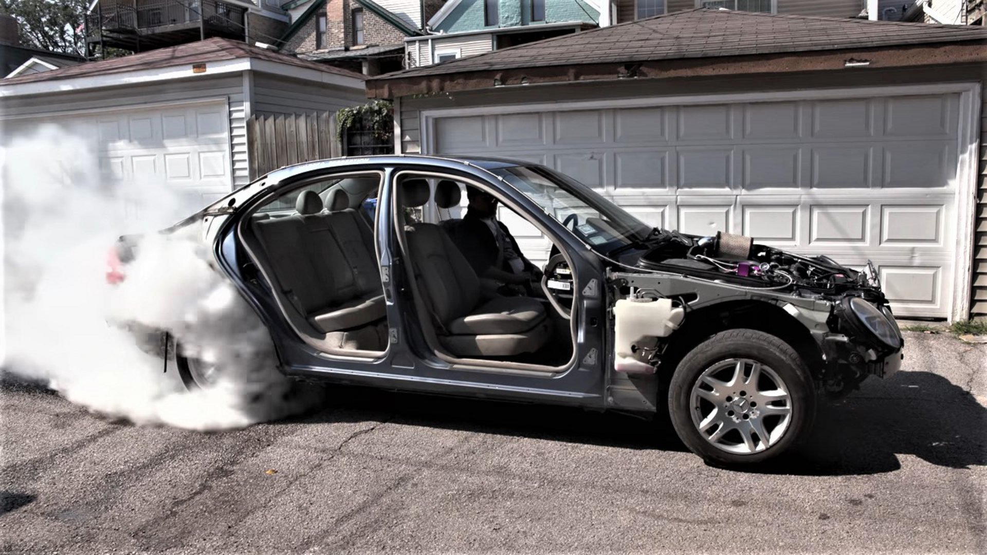 Μια camera GoPro μπήκε στο πίσω ελαστικό μιας E-Class και όπως μπορείτε να δείτε, όπως και το βάθος του ωκεανού κατά τη διάρκεια ενός τυφώνα όπου η επιφάνεια είναι ταραγμένη αλλά η ο βυθός είναι γαλήνιος, το ελαστικό παραμορφώθηκε ελαφρώς. Όλα φαίνονταν αρκετά ήρεμα έως ότου το ελαστικό αποκολλήθηκε και στη συνέχεια εξερράγη.