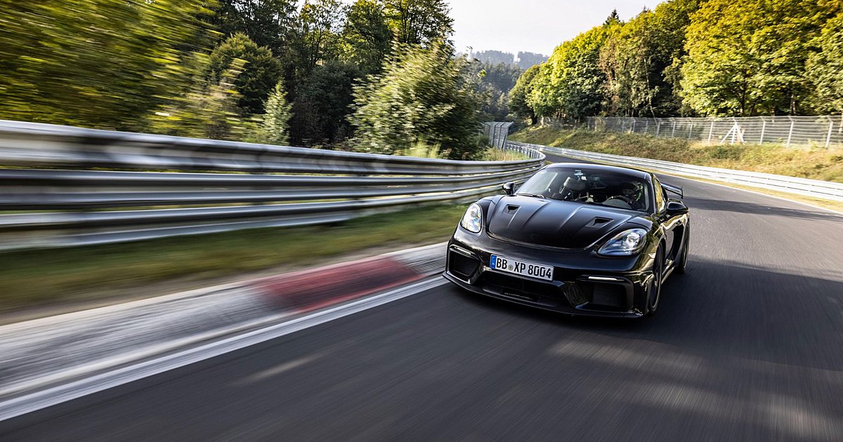Στο τελικό στάδιο των δοκιμών της, ο Jorg Bergmeister, επίσημος δοκιμαστής και πρεσβευτής της Porsche, είχε αναλάβει την Cayman στην «Πράσινη Κόλαση» του Nurburgring-Nordschleife διαπιστώνοντας και ο ίδιος την ταχύτητα της πιο καθαρόαιμης 718 που κατασκευάστηκε ποτέ. Ο Jorg Bergmeister έκανε χρόνο γύρου 7:09.300 στην μήκους 20,832 χιλιομέτρων πίστα του Nurburgring.