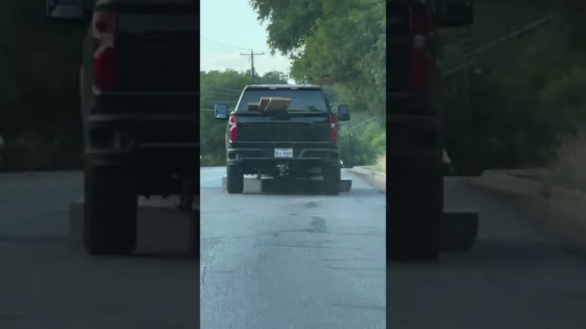 Ο οδηγός ενός Chevrolet Silverado HD έσυρε ένα στρώμα κάτω από το όχημά του, προκαλώντας την έκπληξη στους γύρω του, μην έχοντας ιδέα για το τι συμβαίνει κάτω από το αυτοκίνητό του.