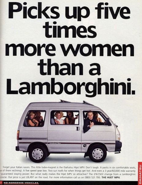 Η συγκεκριμένη διαφήμιση, να πεις ότι έχει άδικο, δεν έχει. Μπορεί με ένα σουρεαλιστικό τρόπο να επιλέγει να συγκρίνει μήλα με πορτοκάλια, περνάει όμως το μήνυμα (και γραπτά) ότι πρόκειται για ένα babe-magnet! Δεν γνωρίζουμε αν τελικά κάποιος αγοραστής το κατάφερε, στα σίγουρα όμως η Lamborghini δεν ασχολήθηκε να δώσει απάντηση.