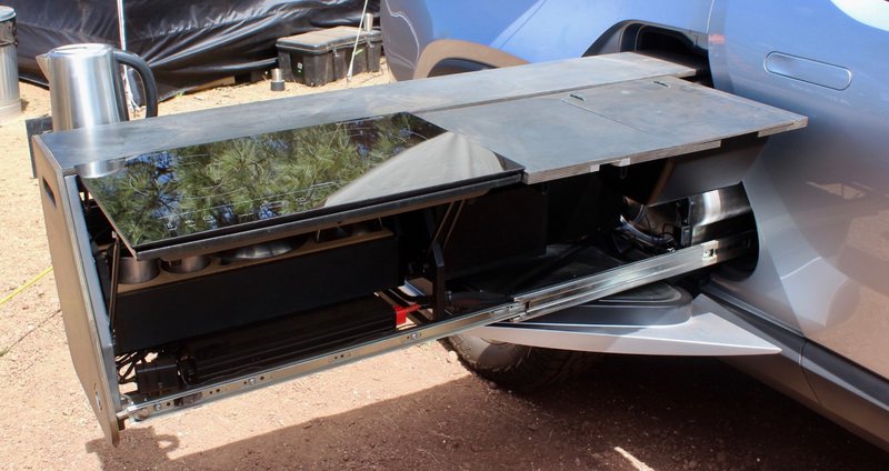 Συγκεκριμένα, το «Camp Kitchen» συντελείται από δύο επαγωγικές εστίες για μαγείρευμα οι οποίες χρησιμοποιούν ενέργεια από τις μπαταρίες του οχήματος για να λειτουργήσουν, έναν πτυσσόμενο νεροχύτη με μικρή βρύση, ένα δοχείο νερού χωρητικότητας τεσσάρων (αμερικανικών) γαλονιών (περίπου 15 λίτρα), καθώς και σετ 30 μαχαιροπήρουνων. Επίσης, περιλαμβάνεται και άλλος απαραίτητος εξοπλισμός μαγειρικής, όπως σπάτουλες, λαβίδες, μεγάλα μαχαίρια από τιτάνιο, ανοιχτήρι κονσέρβας και βραστήρας.