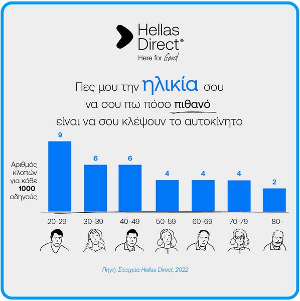 Τέλος, ένα τελευταίο στατιστικό στοιχείο αφορά τις ηλικίες των ασφαλισμένων οδηγών. Για κάθε 1.000 οδηγούς, σημειώθηκαν 9 κλοπές στην ηλικιακή κλίμακα 20-29, που ήταν και αυτή με τις περισσότερες περιπτώσεις. Μπορεί ο αριθμός να μην «εντυπωσιάζει», αλλά είναι υπερδιπλάσιος από τις κατηγορίες 50-59, 60-69 και 70-79 ετών (από 4 περιπτώσεις κλοπών).