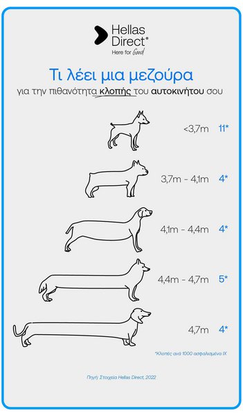 Όλα τα υπόλοιπα μεγέθη αυτοκινήτων που εκλάπησαν (από 3,7 m έως και 4,7 m) και ήταν ασφαλισμένα στην εταιρεία, δεν παρουσιάζουν διαφορές. Για όλα υπήρξαν 4 κλοπές ανά 1.000 οχήματα, με εξαίρεση την κατηγορία με μήκος 4,4 m έως 4,7 m, στην οποία σημειώθηκαν 5.