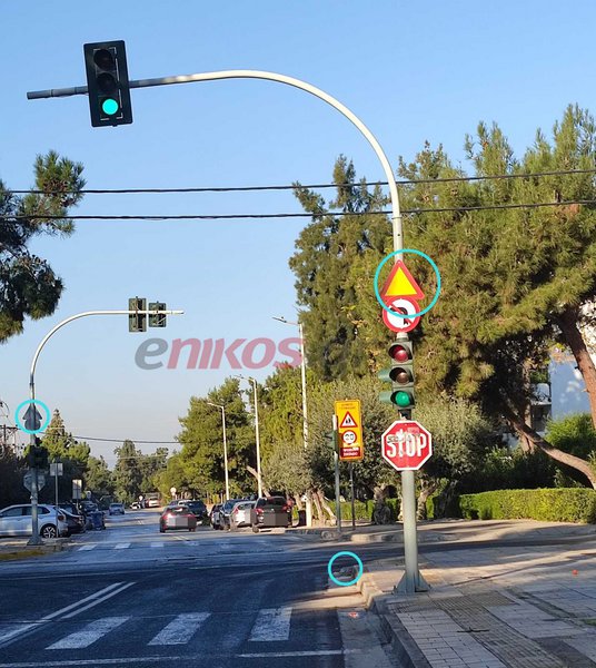 Παράλληλα ο οδηγός σημειώνει πως στη συγκεκριμένη διασταύρωση, στο σημείο που έχει τοποθετηθεί ο στύλος του φωτεινού σηματοδότη, υπάρχει κακοτεχνία στο πεζοδρόμιο που βάζει σε κίνδυνο τους οδηγούς μοτοσυκλέτας.