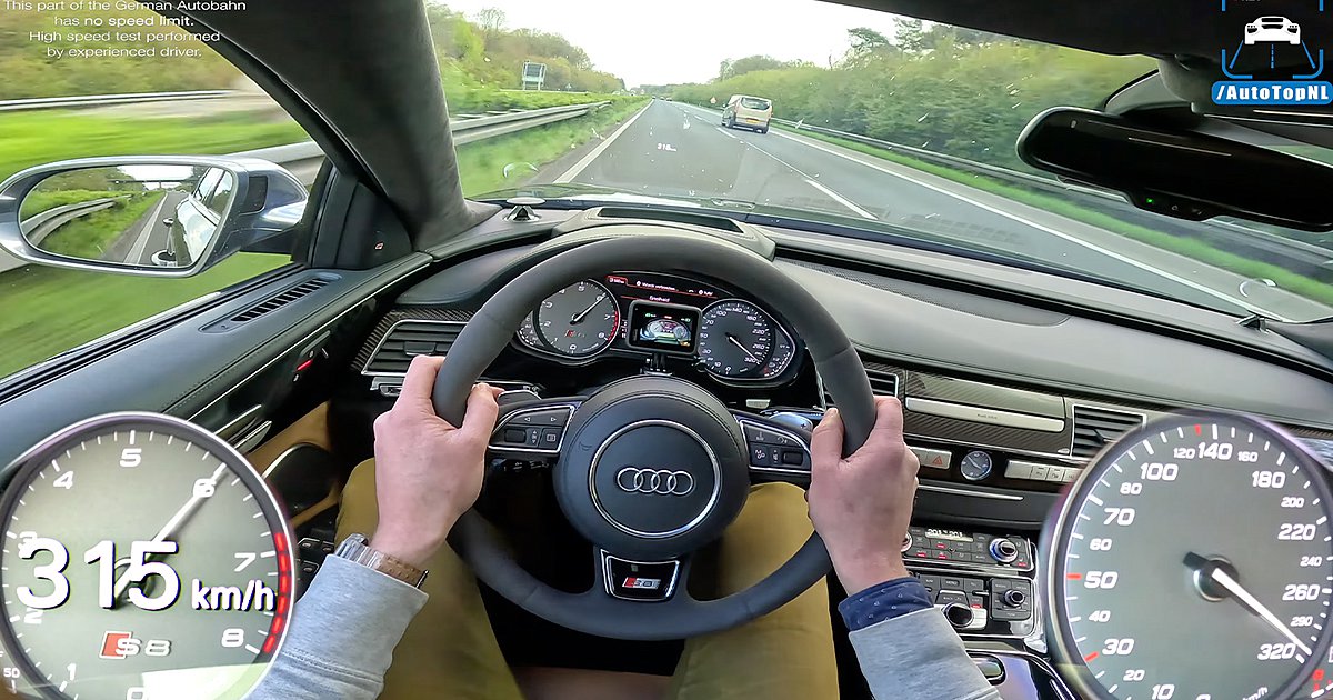 Αυτό που εκπλήσσει όμως είναι η άνεση με την οποία το S8 Plus έφτασε μέχρι τα 315 km/h, υποδεικνύοντας ότι θα μπορούσε να συνεχίσει να ανεβάζει ταχύτητα. Ο οδηγός δεν πήρε το πόδι από το γκάζι επειδή το αυτοκίνητο δεν είχε περισσότερη ταχύτητα να προσφέρει, αλλά επειδή υπήρχαν προπορευόμενα οχήματα. Θα μπορούσε μέχρι και να ξεπεράσει τα 320 km/h, αν του δινόταν η ευκαιρία κι ο χώρος.