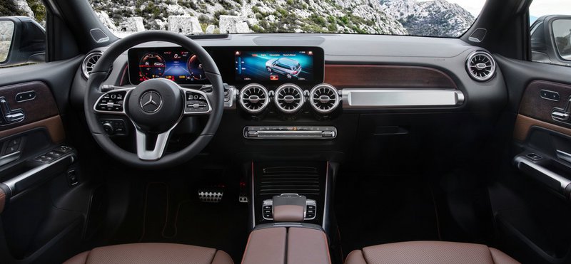 Στο εσωτερικό θα ήταν αδύνατο να μην είχε υιοθετηθεί το εντυπωσιακό MBUX με τις δύο οθόνες 10,25’’ στην top εκδοχή του και το εξελιγμένο σύστημα πολυμέσων με την ψηφιακή βοηθό «Hey Mercedes». Από εκεί και πέρα το ενδιαφέρον επικεντρώνονται και στο γεγονός πως η GLB είναι το πρώτο SUV της κατηγορίας που θα προσφέρεται και με 3η σειρά καθισμάτων.