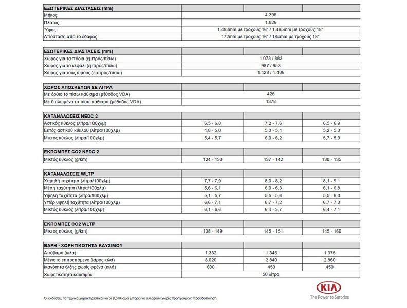 Πίνακας τεχνικών χαρακτηριστικών