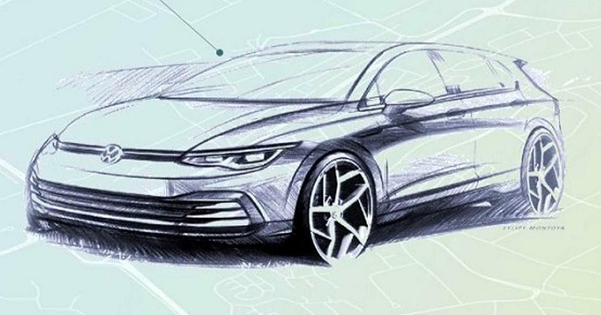 Στο παραπάνω σκίτσο μπορούμε να δούμε ότι σας είχαμε αποκαλύψει πριν από μήνες με τις πρώτες φωτογραφίες του νέου Golf δίχως καμουφλάζ. Διακρίνεται το εξελιγμένο σχήμα της τωρινής γενιάς με τους διαφοροποιημένους προβολείς και το δυναμικό καπό να βουτά ελαφρώς πιο απότομα. Το σκίτσο ενδεχομένως να αφορά σε κάποια top έκδοση αφού ξεχωρίζουν οι μεγάλες ζάντες με το χαμηλό προφίλ ελαστικών καθώς και η πίσω αεροτομή στο πάνω μέρος της οροφής.