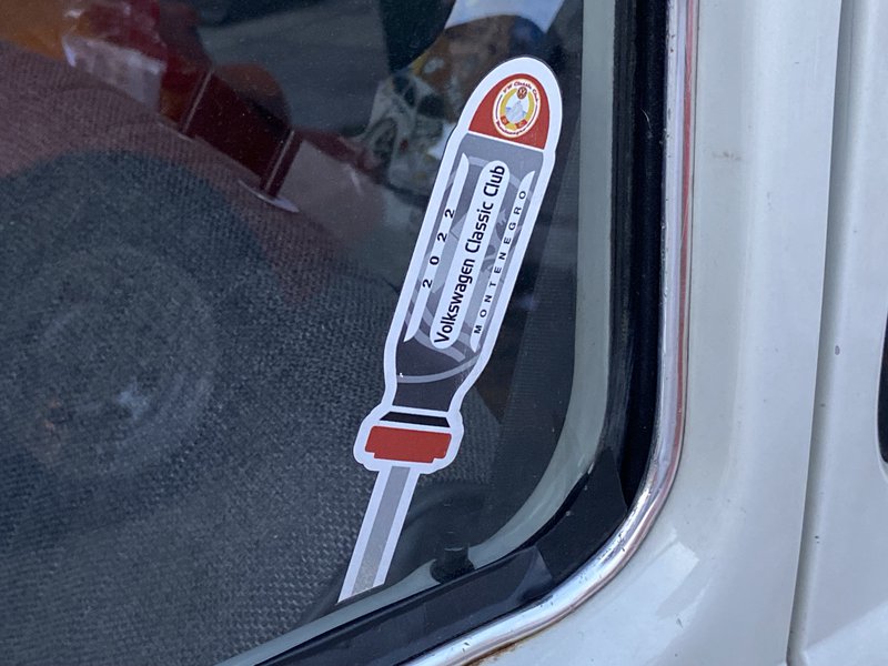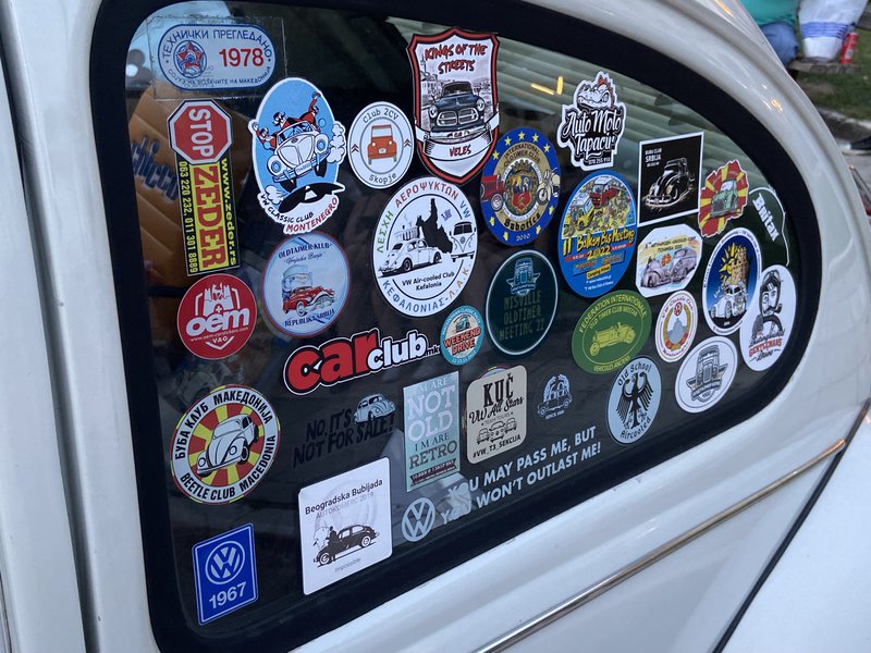 «Από κάθε συνάντηση αερόψυκτων VW ή σκαραβαίων που πηγαίνω μαζεύω κι ένα αυτοκόλλητο. Το πιο ιδιαίτερο για εμένα είναι αυτό από την πρώτη συνάντηση αερόψυκτων μοντέλων που παρευρέθηκα εκτός Β. Μακεδονίας, η οποία ήταν το 2019 στο Βελιγράδι. Κατάφερα να οδηγήσω 500 km με τον σκαραβαίο μου, με ελαστικά 14 ετών, ήταν ένα αξέχαστο ταξίδι και σημαίνει πολλά για εμένα.»