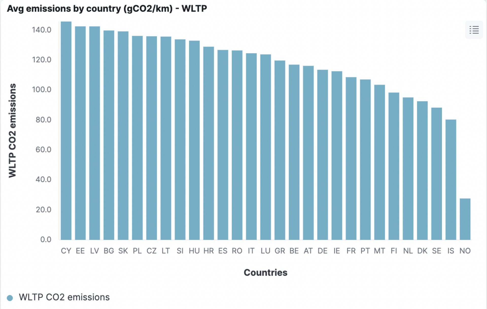 Απεναντίας η χώρα με τον υψηλότερο μέσο όρο είναι η Κύπρος με 145,8 g/km και ακολουθούν η Εσθονία (142,6 g/km) και η Λετονία (142,5 g/km).