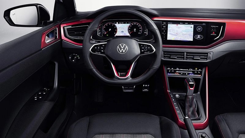 Η καμπίνα του νέου Polo GTI όπως είναι φυσικό θα εξοπλίζεται με όλες τις hi-tech τεχνολογίες της γερμανικής μάρκας, όπως είναι το Virtual Cockpit με ψηφιακό πίνακα οργάνων 10,25 ιντσών και κεντρική οθόνη αφής 8,0 ιντσών για το σύστημα infotainment. Δεν θα μπορούσαν να απουσιάζουν φυσικά τα εμβληματικά καρό καθίσματα με τις ραφές σε κόκκινο χρώμα, όπως και τα κόκκινα διακοσμητικά στο ταμπλό και στις χειρολαβές των θυρών.