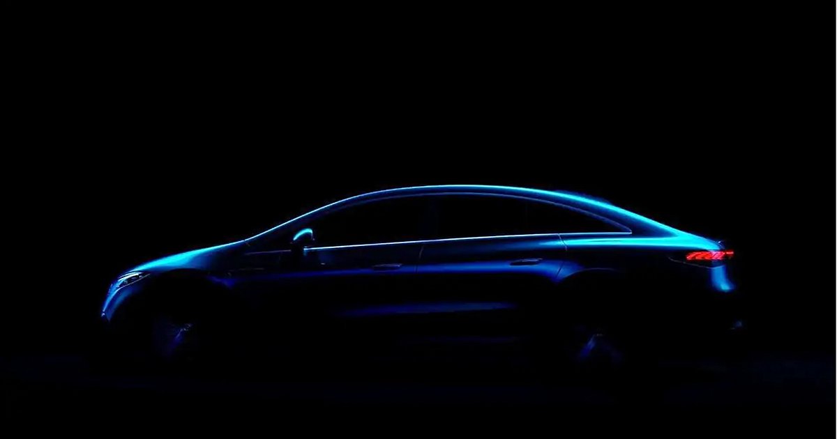 Η συγκεκριμένη φωτογραφία είναι σκοπίμως σκοτεινή ώστε να μην είναι δυνατόν να φανούν λεπτομέρειες του αμαξώματος της Mercedes-Benz EQS. Ωστόσο, είναι διακριτό πως το αμιγώς ηλεκτροκίνητο πολυτελές μοντέλο δεν θα είναι ένα όχημα με την τυπική μορφή ενός sedan.