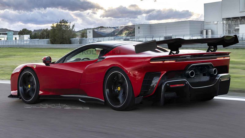 Για τα εμπρός φώτα «υιοθέτησαν» τη σχεδίαση αυτών που έφεραν τα πρωτότυπα που εντοπίστηκαν τις προηγούμενες ημέρες, ενώ για τα πίσω, από τη στιγμή που όπως προείπαμε το αυτοκίνητο δοκιμών «φορούσε» αυτά της SF90, έδωσαν τη δική τους σχεδιαστική ερμηνεία. Σαφώς στο πίσω μέρος δεσπόζει η τεράστια πτέρυγα, με το ιδιαίτερο σχήμα.
