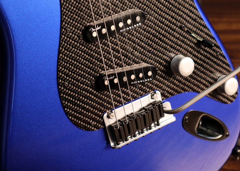 Η στερέωση του pickguard σε carbon look γίνεται με μαύρες βίδες με κουμπιά, που δίνουν εμφάνιση αυτοκινήτου, ενώ η Fender χρησιμοποιεί για πρώτη φορά αθόρυβα μονά πηνία για τα pickup. Η μπλε κεφαλή φέρει επιχρωμιωμένο λογότυπο Fender. Τέλος, η θήκη, η οποία είναι επενδυμένη με βινύλιο με δομή από ανθρακονήματα, είναι διακοσμημένη με μαύρα δερμάτινα φινιρίσματα και ένα κεντημένο λογότυπο Lexus στο καπάκι.