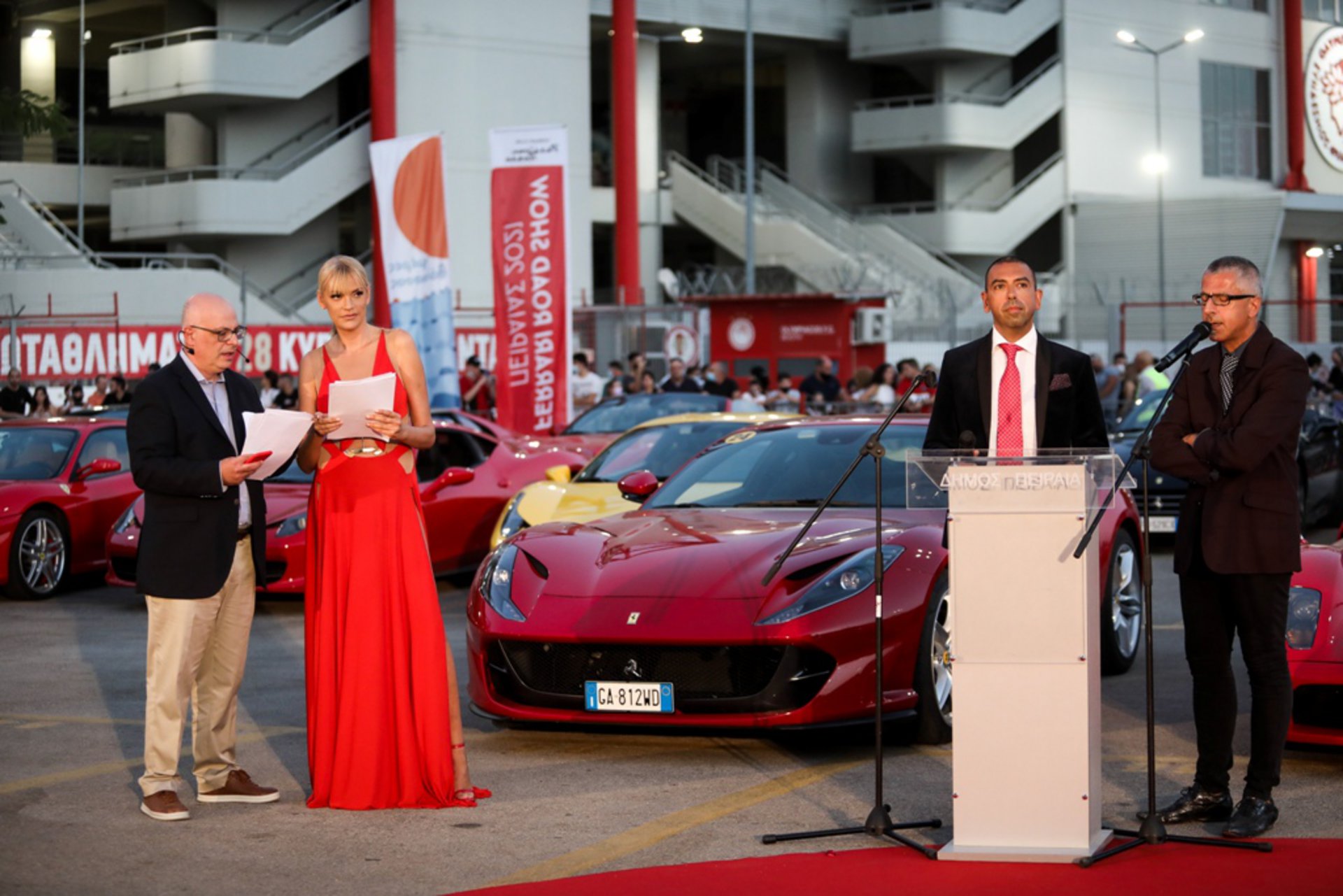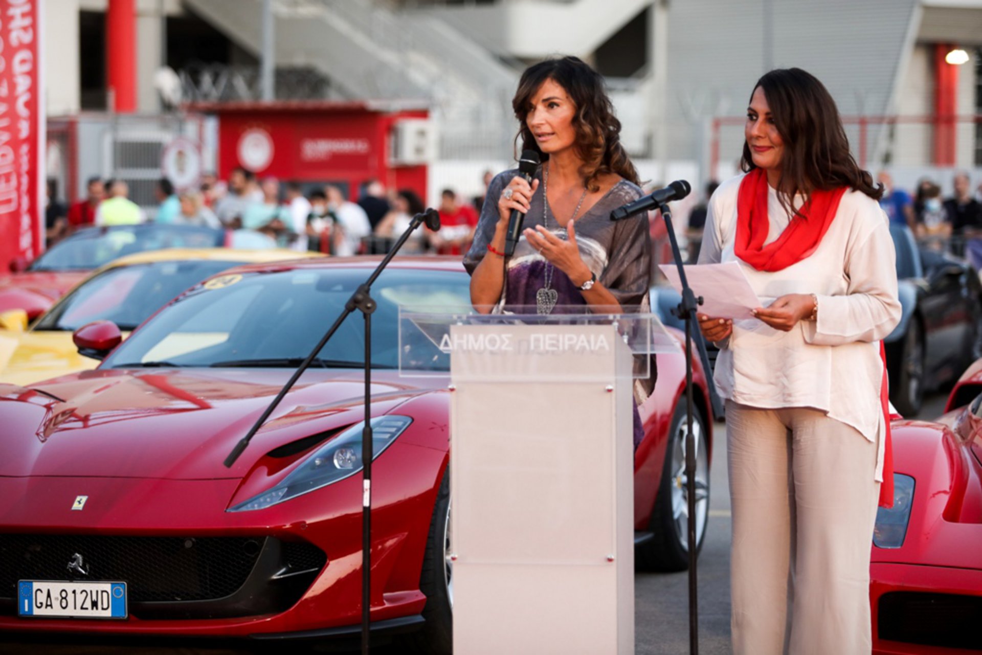 Η μοναδική αυτή δράση ολοκληρώθηκε με μια λαμπερή εκδήλωση στο «Γ. Καραϊσκάκης», όπου πραγματοποιήθηκε η επίσημη παρουσίαση του Ferrari Club «Passione Rossa», παρουσία του Υφυπουργού Πολιτισμού και Αθλητισμού κ. Λευτέρη Αυγενάκη, της Υφυπουργού Τουρισμού κυρίας Σοφίας Ζαχαράκη, της Πρέσβειρας της Ιταλίας στην Ελλάδα κυρίας Πατρίτσια Φαλτσινέλι, του Περιφερειάρχη Αττικής κ. Γιώργου Πατούλη, του Δημάρχου Πειραιά κ. Γιάννη Μώραλη, της Αντιπεριφερειάρχη Πειραιά κυρίας Σταυρούλας Αντωνάκου, της αρμόδιας Αντιδημάρχου Επικοινωνίας Προβολής και Μέσων Ενημέρωσης κυρίας Ανδριάνας Ζαρακέλη, του Προέδρου του Ferrari club «Passione Rosa», Δρ. Φάμπιο Μπαρόνε κ.α.