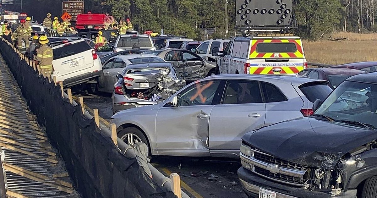Ο αυτοκινητόδρομος Ι-64 έκλεισε για πάνω από τρεις ώρες μέχρι τα αρμόδια όργανα να καθαρίσουν τον δρόμο από τον ατελείωτο σωρό από στραπατσαρισμένες λαμαρίνες.