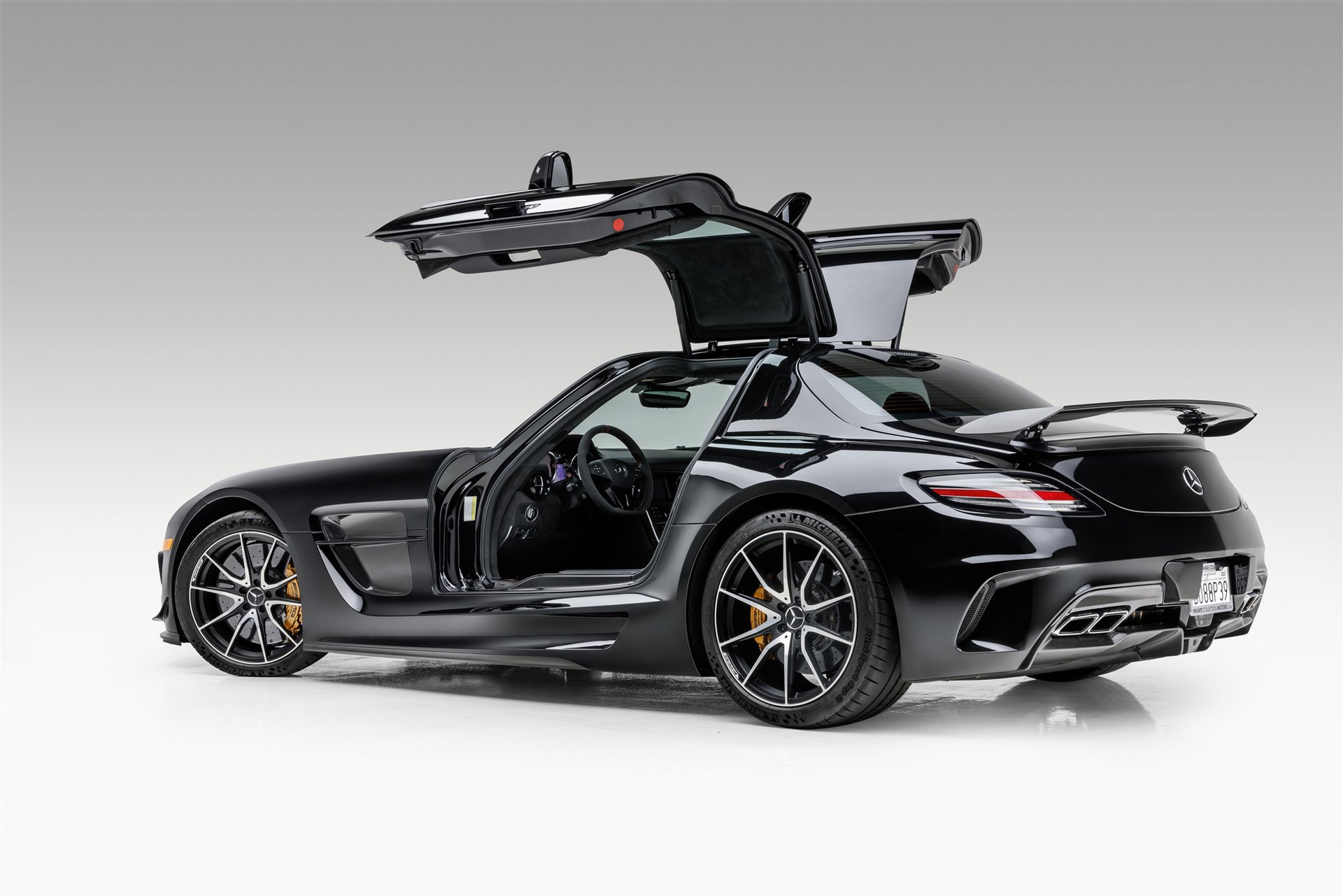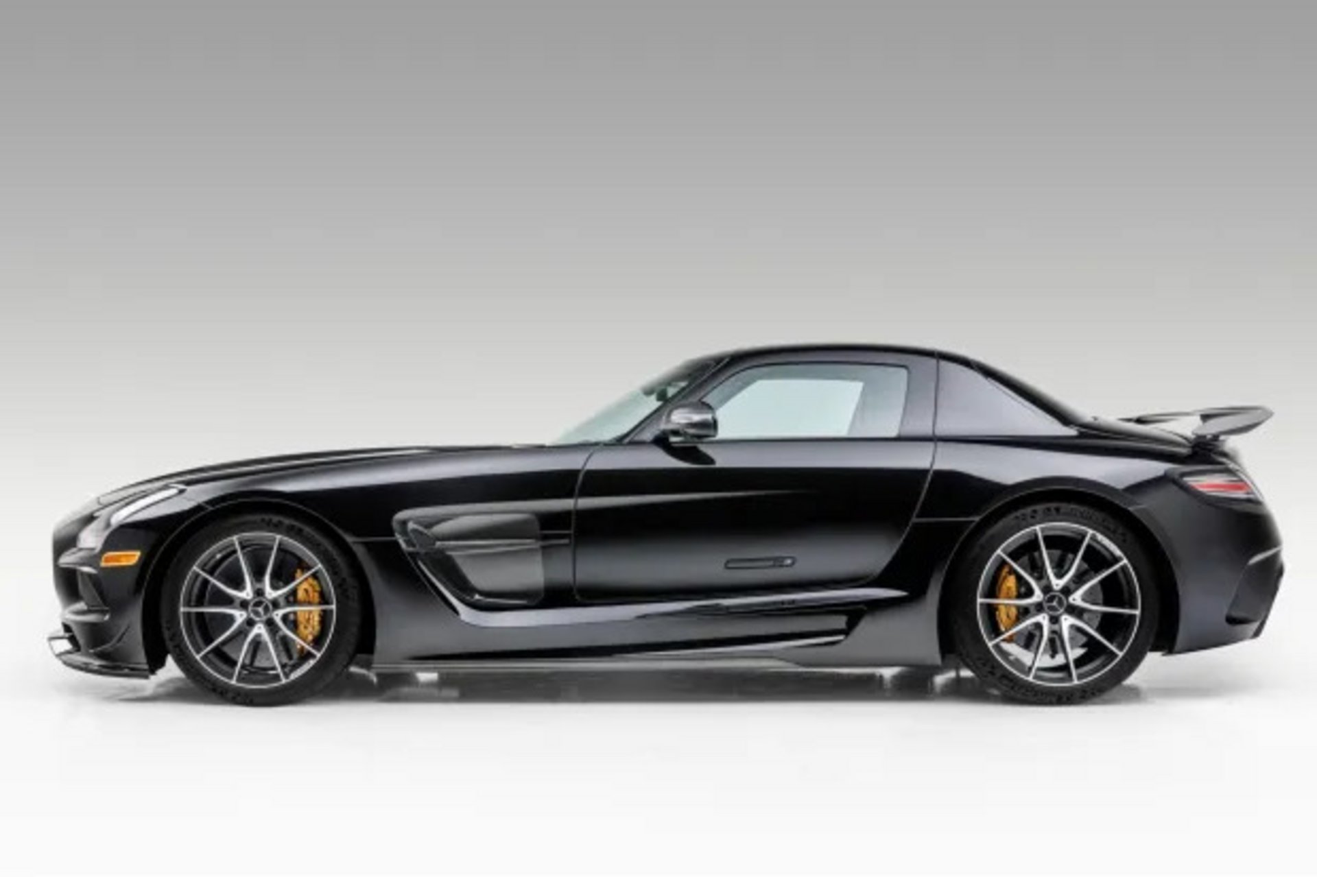 Παρόλο που η SLS AMG Black Series δε φέρει την υπερμεγέθη πίσω αεροτομή της AMG GT Black Series, δεν υστερεί στην εμφάνιση. Η συγκεκριμένη μονάδα του 2014, που είναι διαθέσιμη μέσω του Bring A Trailer, είναι βαμμένη σε απόχρωση Obsidian Black Metallic κι έχει εξοπλιστεί με τροχούς διαμέτρου 19 και 20 ιντσών σε μαύρο και ασημί χρώμα.