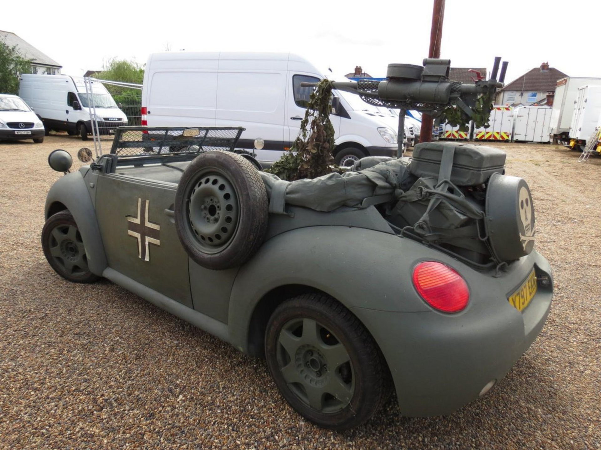 Η βάση είναι ένα Beetle Cabrio του 2.000 με κινητήρα βενζίνης 2.000 κυβικών και 116 ίππων. Το οποίο αφού βάφτηκε στο κλασικό χρώμα του γερμανικού στρατού και απέκτησε το χαρακτηριστικό σταυρό στις πόρτες θα μπορούσε κάλλιστα να περάσει σαν στρατιωτικό όχημα, έστω και όχι μάχιμο. Για να φτάσει σε αυτό το επίπεδο οι επεμβάσεις συνεχίστηκαν.